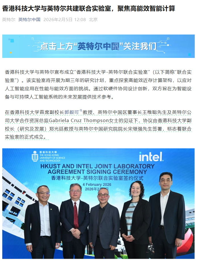 IT之家 2 月 5 日消息,2 月 4 日,香港科技大学与英特尔宣布成立“香港科技大学-英特尔联合实验室”(IT之家注:以下简称“联合实验室”)。