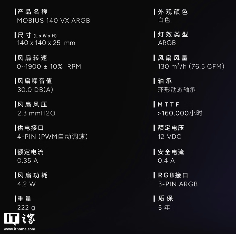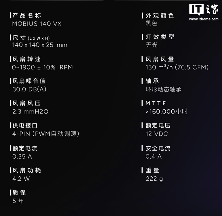 IT之家附风扇参数如下:
