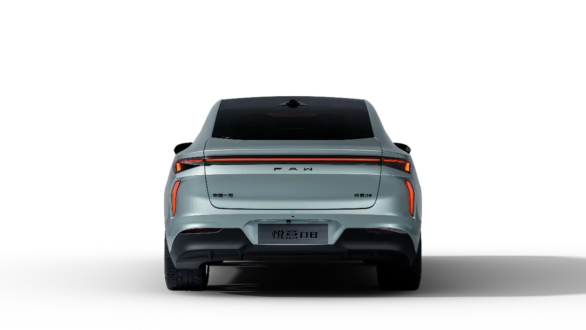 一汽悦意 08 的设计融合溜背轿跑造型、贯穿式尾灯和半隐藏式门把手,车头配备星河瀑布动态灯组,以增强辨识度。