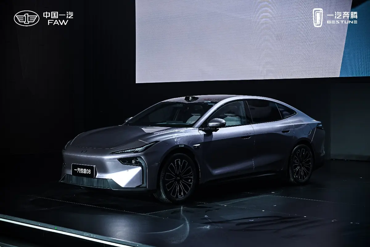 一汽奔腾的产品矩阵分为 E 系、P 系和 R 系三个系列:E 系聚焦城市出行场景,P 系定位“超级电混”产品,R 系则作为科技旗舰,面向“下一代全球风尚智能车”市场。