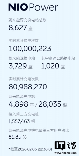 IT之家 2 月 6 日消息,蔚来创始人、董事长、CEO 李斌今日开启直播,宣布蔚来 1 亿次换电达成。