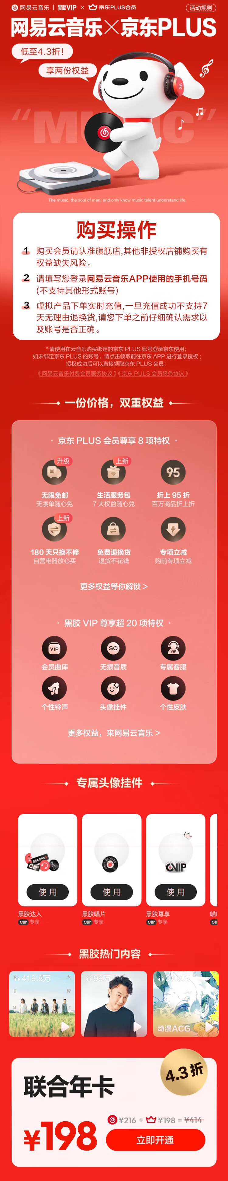 网易云音乐 App 中京东 PLUS 联合会员年卡现售 198 元,今日大促仅需 128 元。