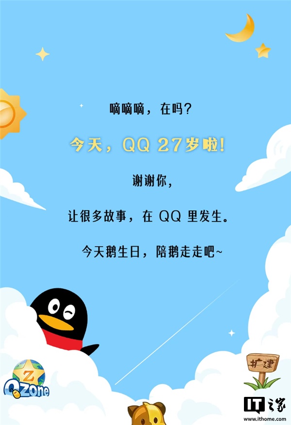IT之家 2 月 10 日消息,今日,腾讯 QQ 迎来其诞生后的第 27 个年头。腾讯官方发文回顾了这一即时通讯巨头的成长历程。