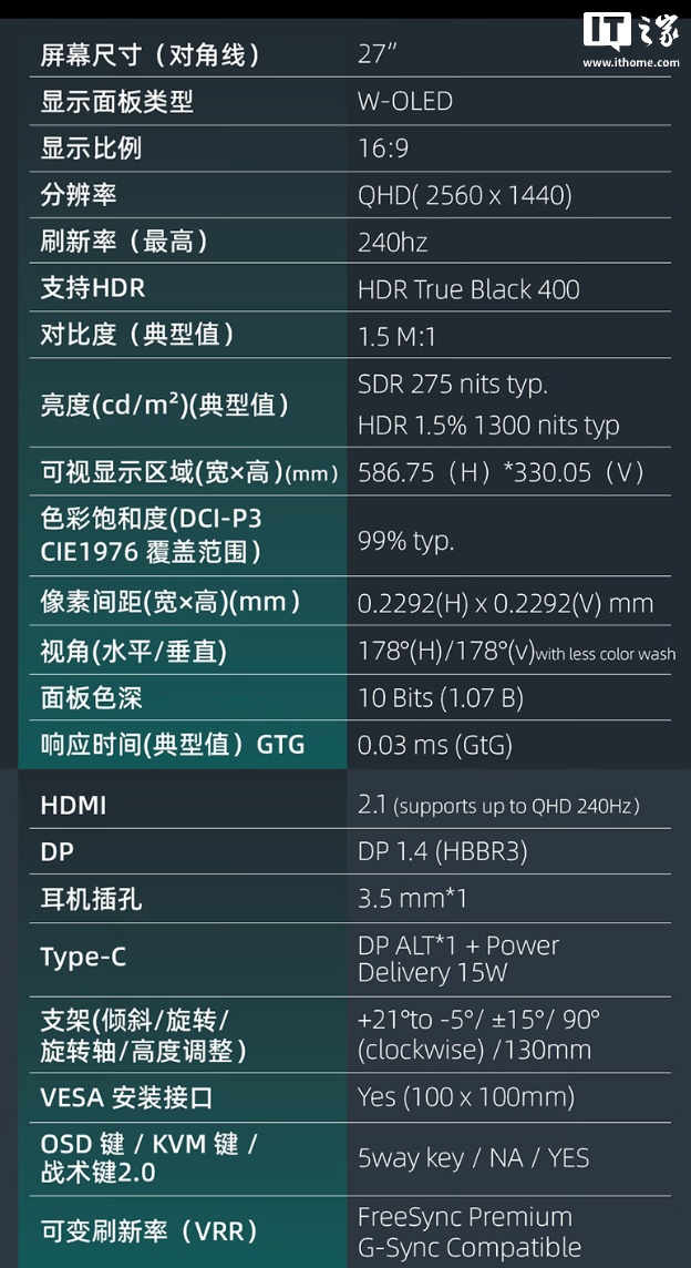 IT之家获悉,该显示器详细参数如下: