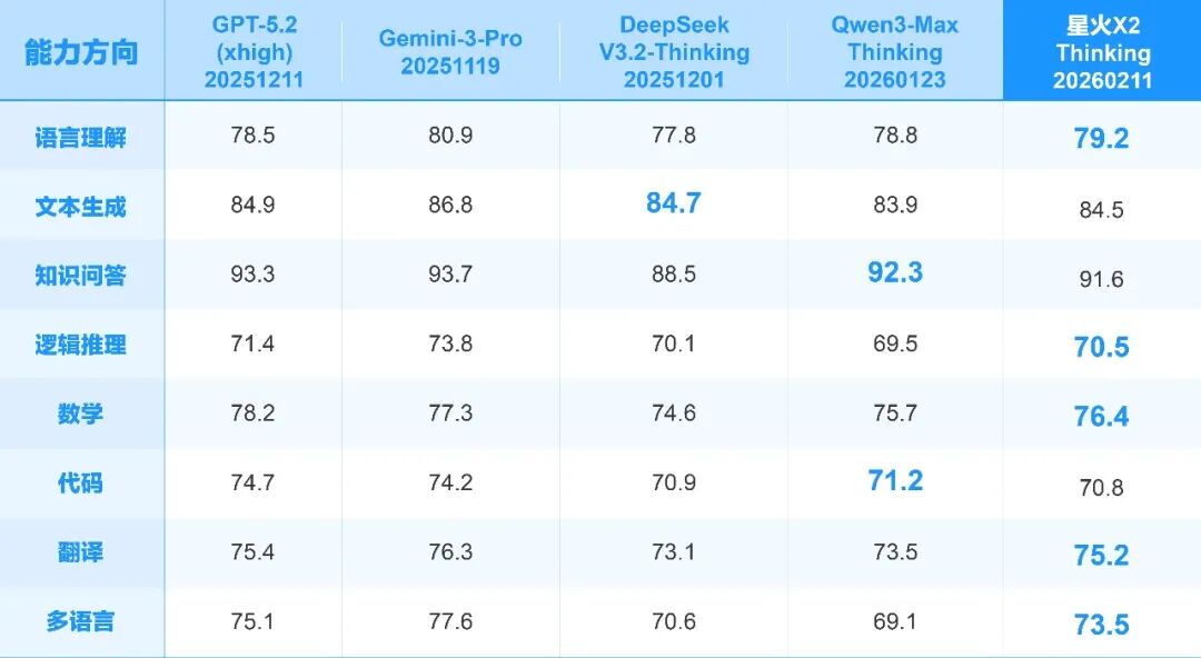 1、通用能力全面升级,星火 X2 整体能力对标国际顶尖模型水平,在数学、推理、语言理解、智能体等能力上媲美国际最优;130+ 多语言综合能力继续提升,拉美、东盟等地区重点语种效果保持业界领先水平。