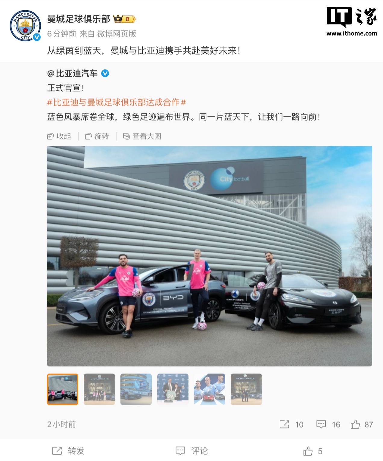 IT之家 2 月 11 日消息,今天下午,比亚迪、曼城足球俱乐部宣布达成深度战略合作,比亚迪成为曼城足球俱乐部官方合作伙伴。