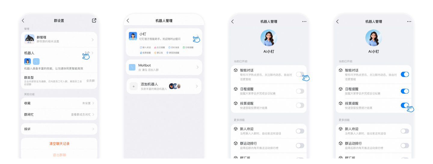 阿里表示,目前“AI 小钉”已支持通过“自定义关注业界关键词”每日定时往群内精准推送高价值内容、定时汇总群动态自动生成日报 / 周报摘要、自然语言对话管理群聊设置群成员身份等功能,从而帮助用户提升工作效率。