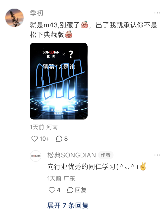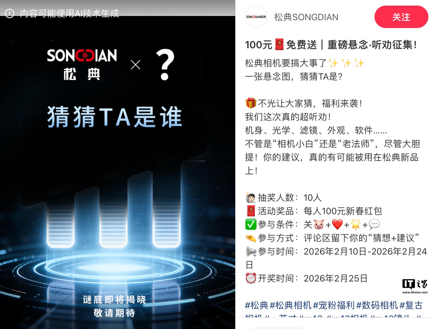 值得注意的是,松典今天也在小红书发文,预热一款神秘新品相机。