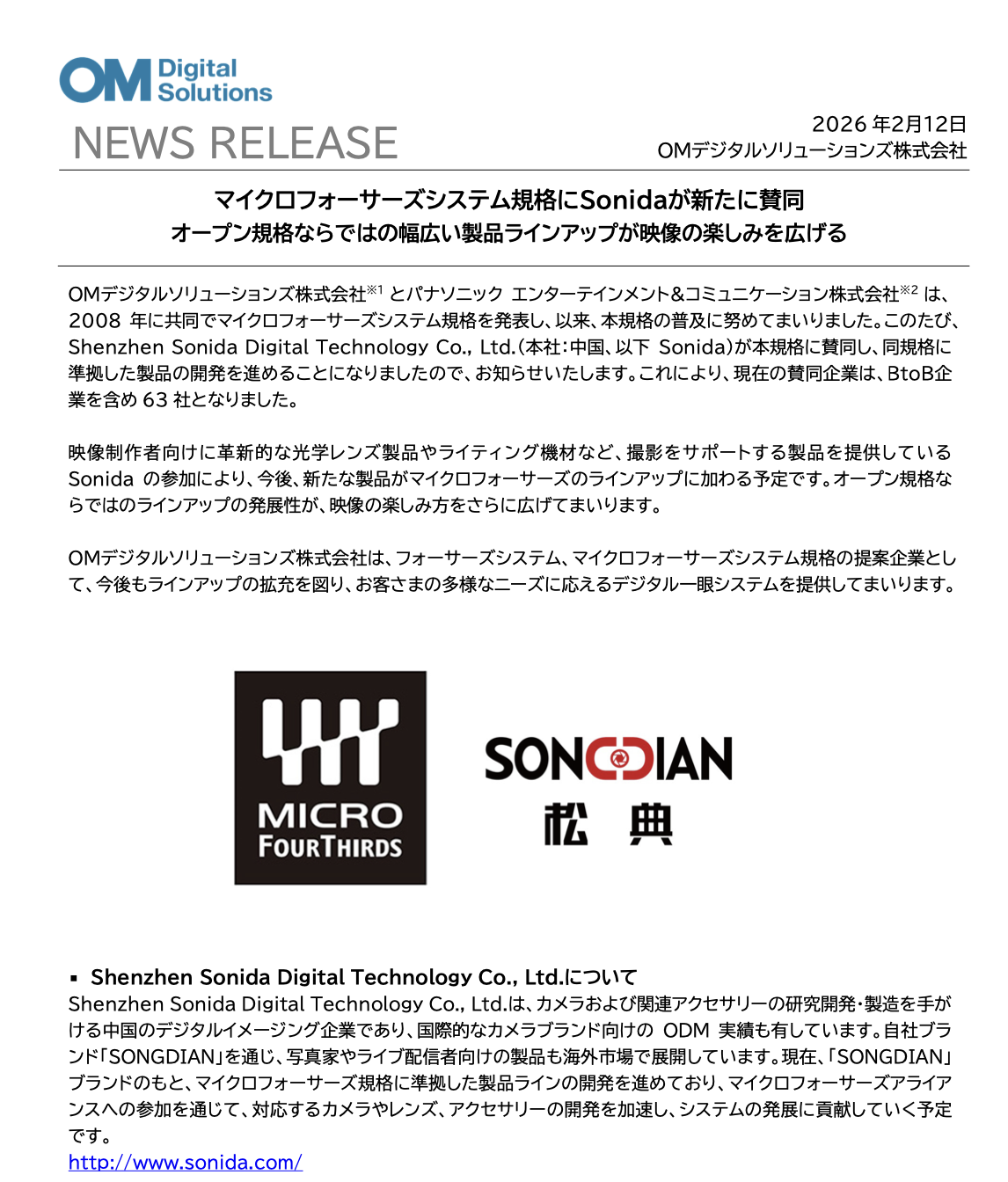 IT之家 2 月 12 日消息,奥林巴斯奥之心数字科技、松下娱乐与通信有限公司今天发布新闻稿,宣布深圳索达数码科技有限公司(松典)加入 M43 卡口联盟。