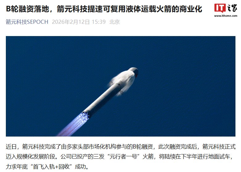 IT之家 2 月 12 日消息,箭元科技官方今日发文称,近日完成了由多家头部市场化机构参与的 B 轮融资,并表示此次融资完成后,公司正式迈入规模化发展阶段。