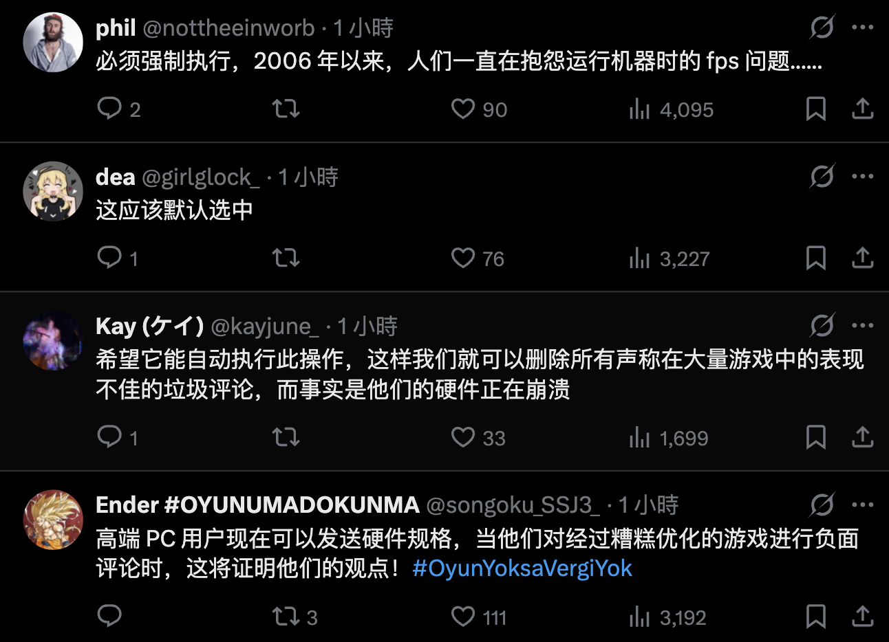 后续有用户回复道,这一变化可以避免“喷优化差结果用的是差显卡”现象出现;更有甚者认为这一选项应该默认打开,防止大量“喷子”涌现评论区。