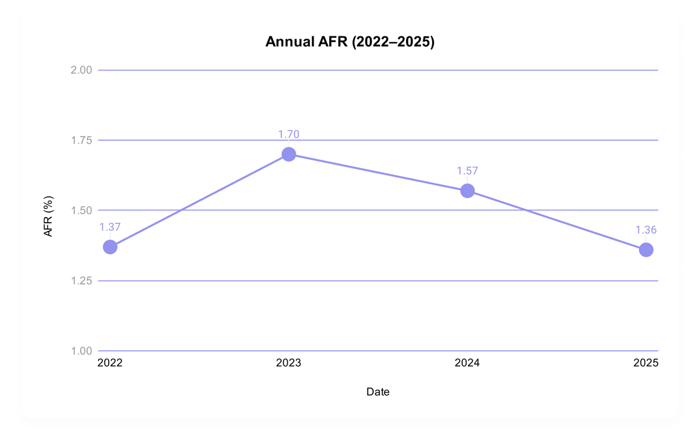 在该企业启动这项统计的第 13 个年头,参与统计的全部 30 个型号均有故障案例出现,不过全年来看整体 AFR(年化故障率)降至 1.30%,是 2022 年来的最低值。