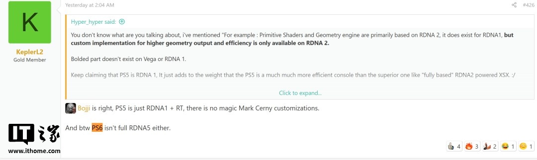 IT之家 2 月 16 日消息,消息源 KeplerL2 在 NeoGAF 论坛与用户讨论时透露,索尼现款 PS5 实际上是 RDNA 1 架构与光线追踪等技术的混合体,非单一架构(整体基于 RDNA 1,不过带有部分 RDNA 2 特性),而 PS6 也会延续这一设计,同样不会采用完整的 RDNA 5 架构。