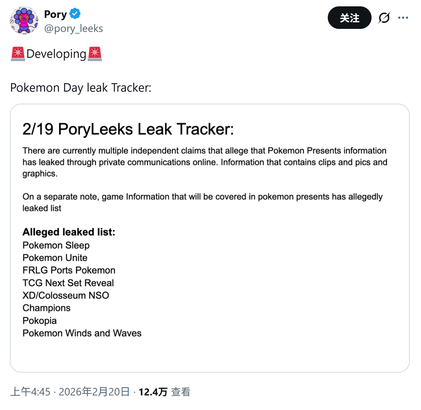 IT之家 2 月 21 日消息,消息源 @Pory_Leeks 昨日(2 月 20 日)在 X 平台发布推文,爆料称在 2 月 27 日举办的 Pokémon Presents 活动中,宝可梦第十世代(Gen 10)正统续作《宝可梦:风 / 浪》(Pokémon Wind and Waves)游戏将亮相登场。