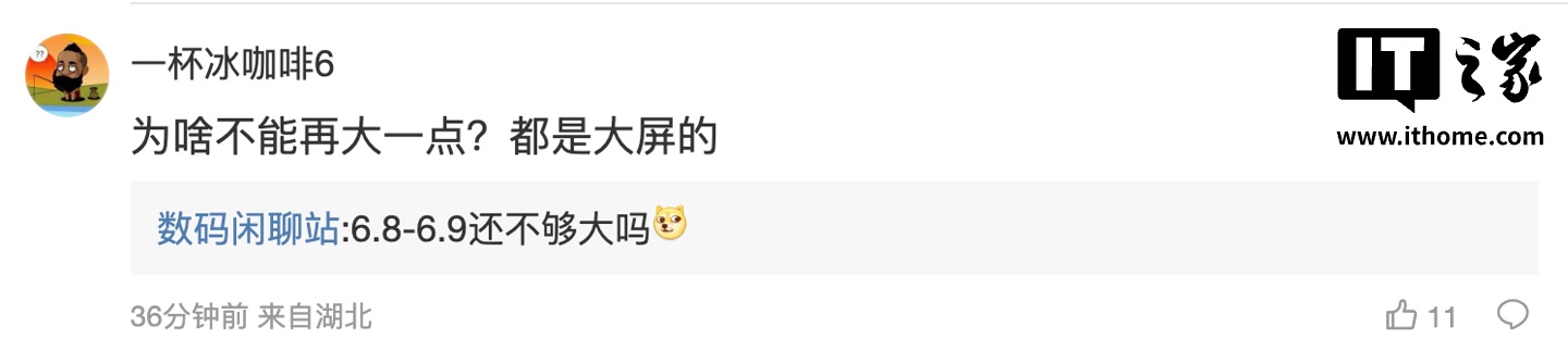 ”;另一名用户则询问道:“为啥不能再大一点?都是大屏的”,博主则表示:“6.8-6.9 还不够大吗