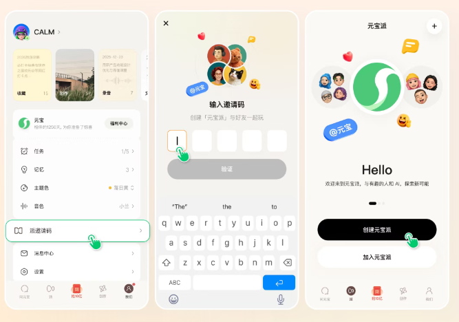 在此之前,用户需要将元宝 App 更新到 2.57.0 以上版本,右下角点击「我们」一「派邀请码」输入邀请码(G1C2K)就能创建属于自己的派,数量有限,先到先得。
