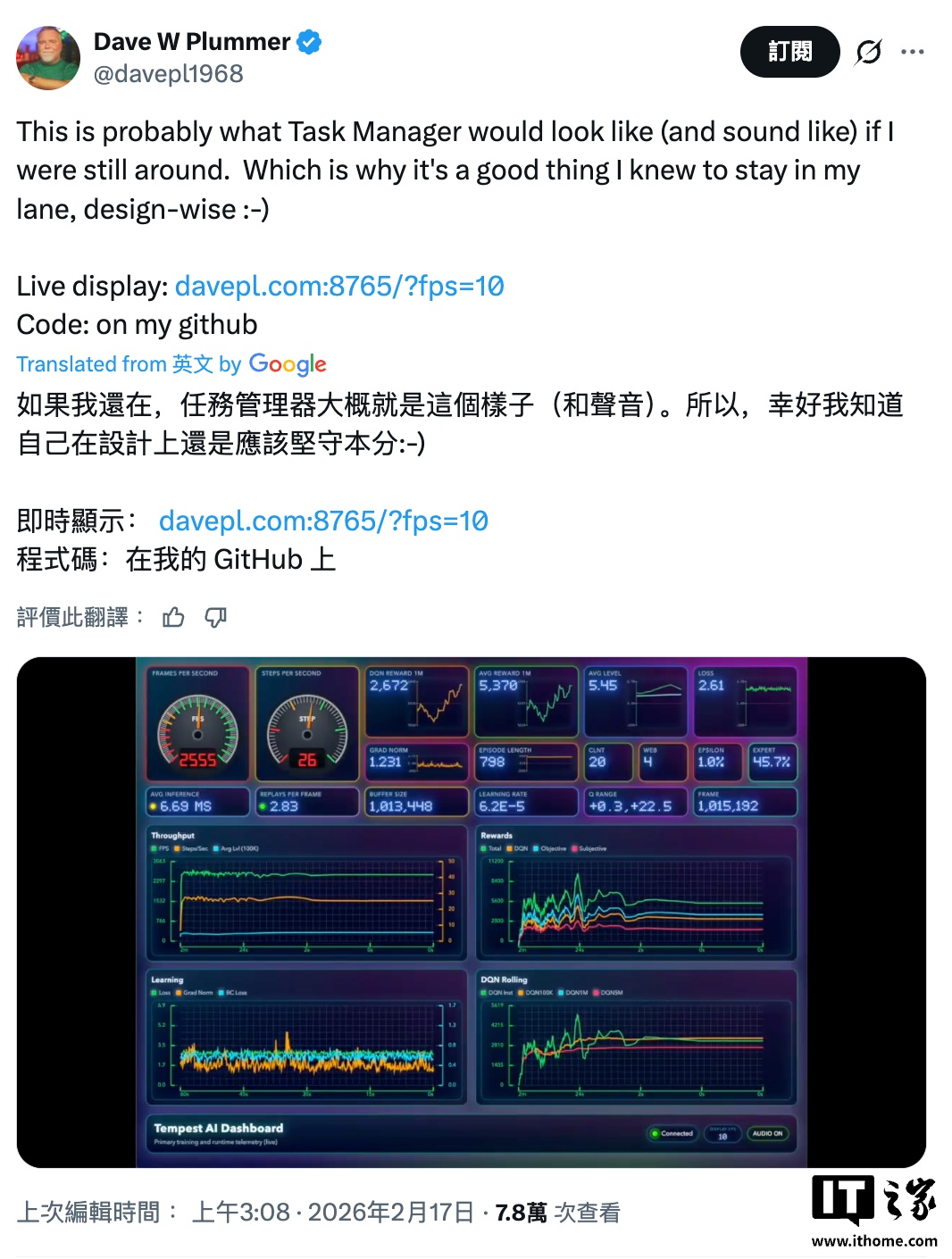 IT之家 2 月 22 日消息,前微软资深工程师 Dave W. Plummer 本周(2 月 17 日)在 X 平台发文,晒出自己理想中的任务管理器。