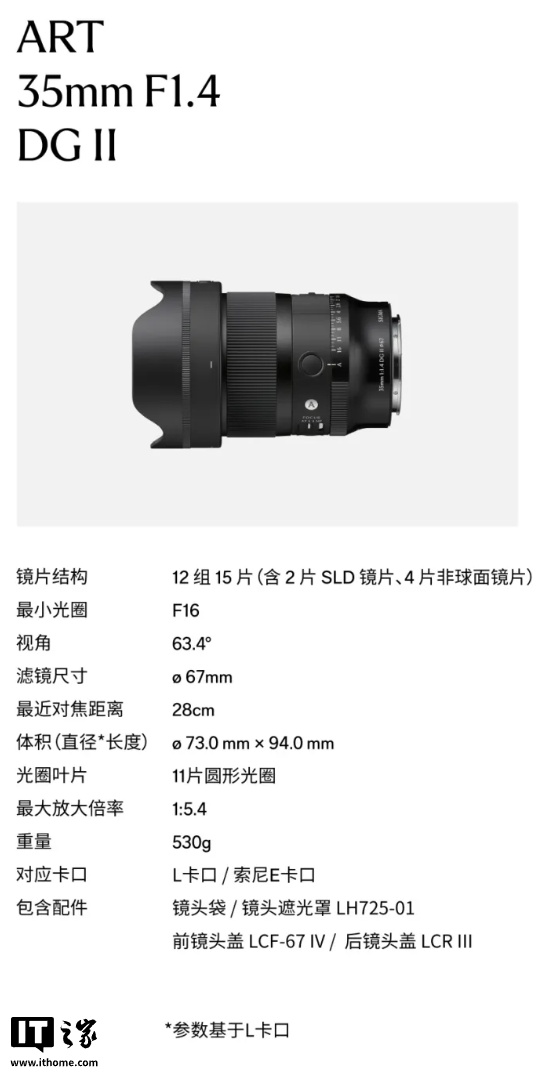 适马 35mm F1.4 DG II | Art 镜头海外售价 1059 美元(现汇率约合 7324 元人民币),IT之家附新品参数表如下: