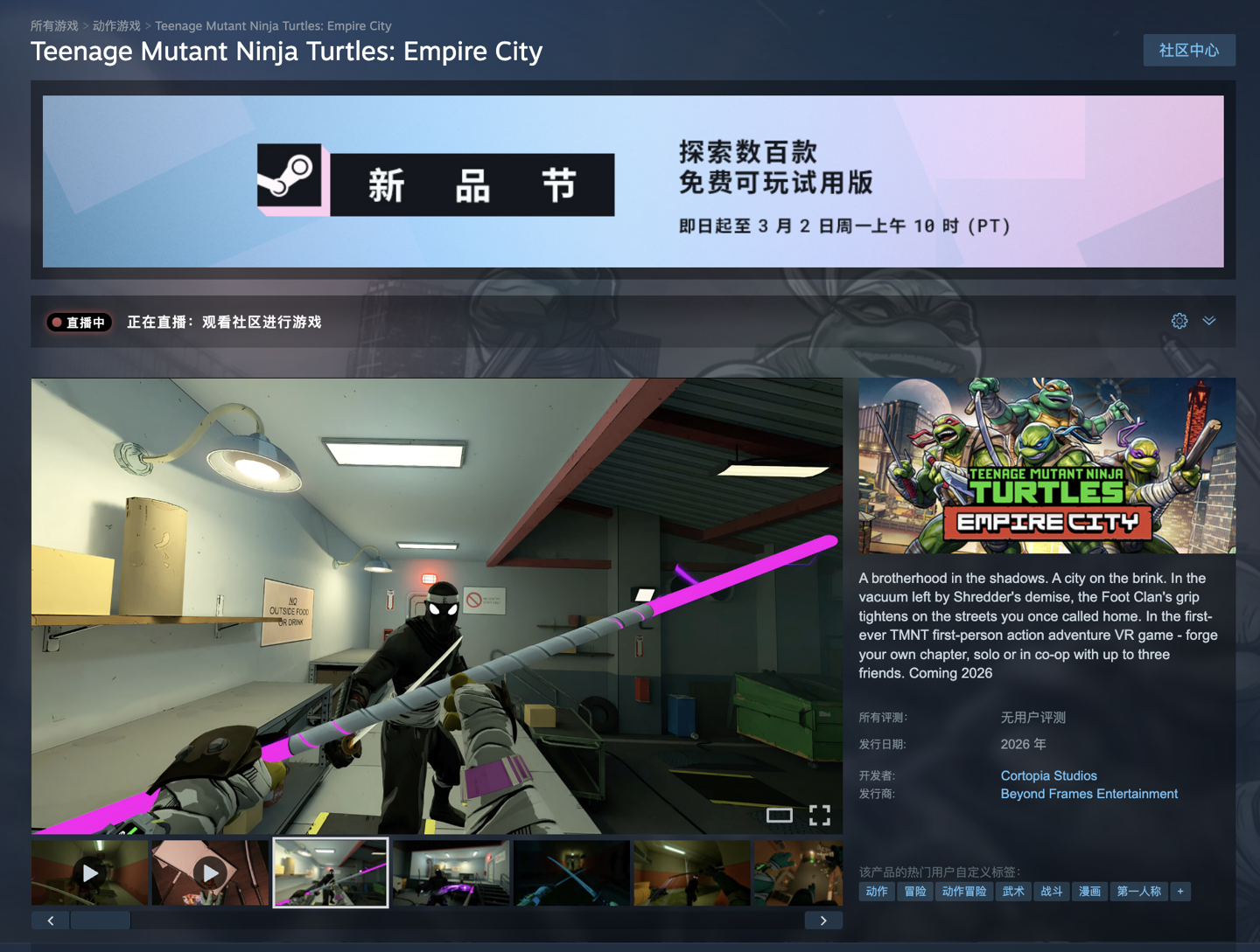 IT之家 2 月 24 日消息,开发商 Cortopia Studios 旗下 VR 动作游戏《忍者神龟:帝国之城(Teenage Mutant Ninja Turtles:Empire City)》现已在 Steam 开启试玩。