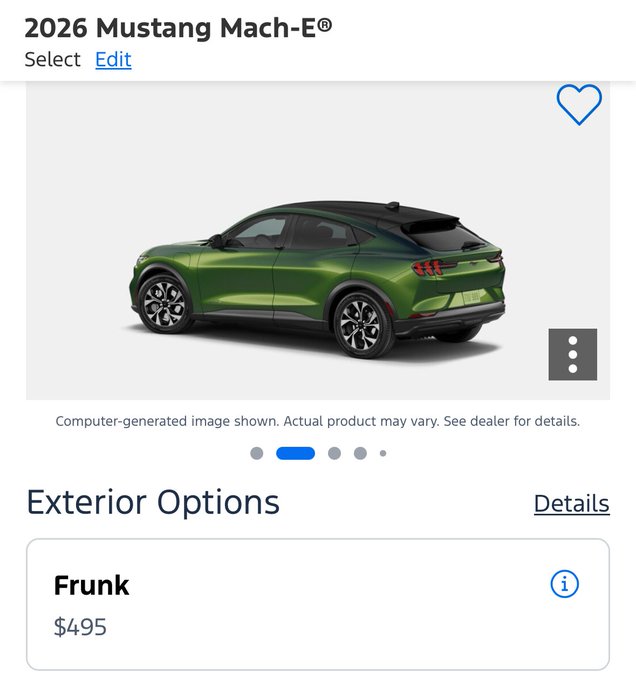 现在,订购全新 Mustang Mach-E 需要为一项基础电动功能额外付费:前备厢。