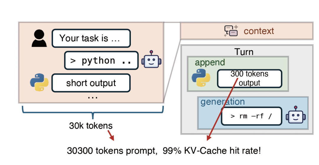 之所以这样做,是因为在当前的智能体应用中,对话轮数多且上下文长,KV-Cache 命中率通常高达 95% 以上。