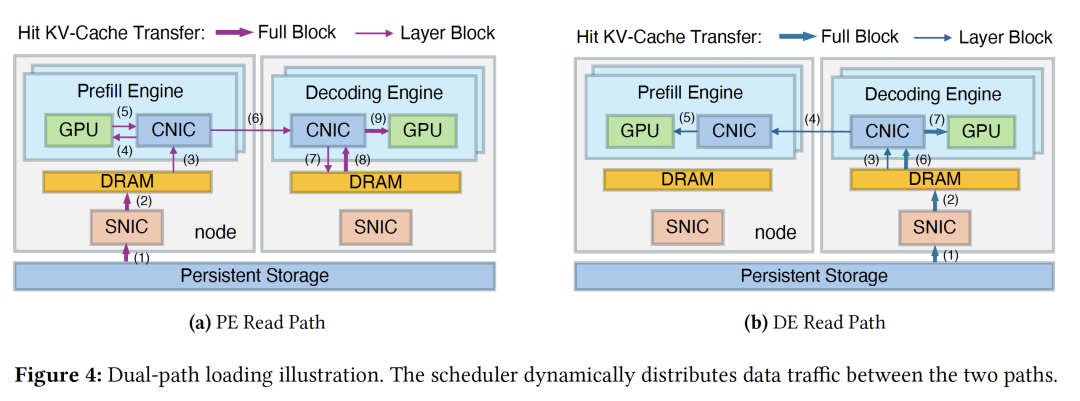 通过在两条路径间动态分配负载,系统将集群中原本闲置的解码侧存储网卡(SNIC)带宽彻底释放,构建起一个全局可调度的存储 I/O 资源池。
