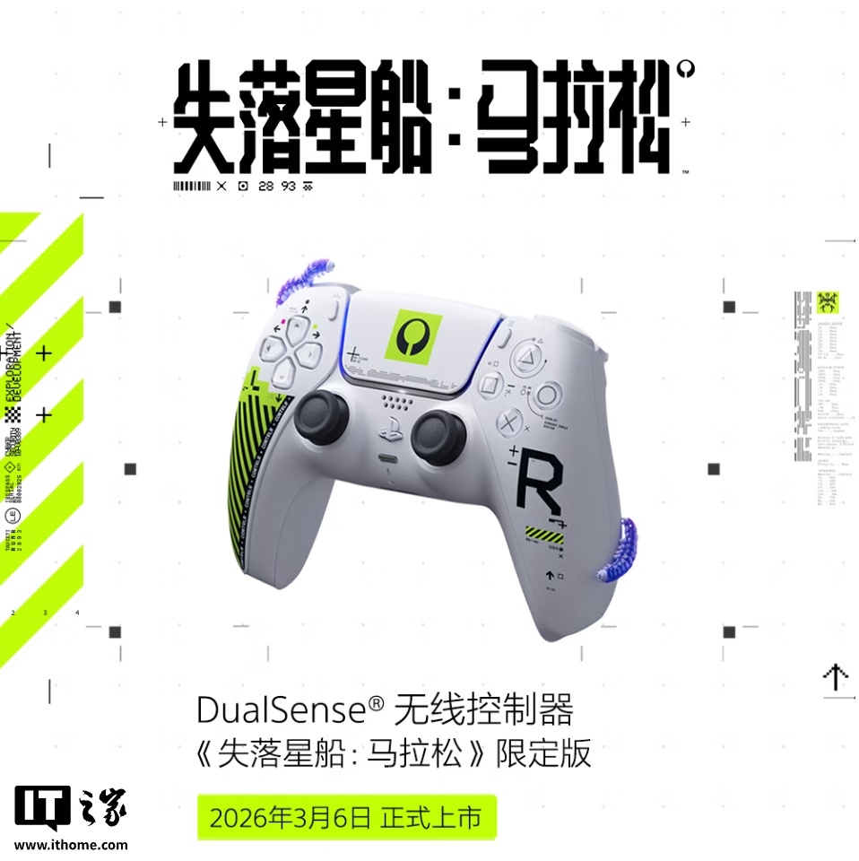 IT之家 2 月 27 日消息,索尼旗下 Bungie 工作室的实时服务性多人游戏《失落星船:马拉松》将于 3 月 6 日正式发布,官方同步推出一款《失落星船:马拉松》DualSense PS5 手柄,国行定价为 639 元,目前已开启预售,3 月 6 日正式发售。