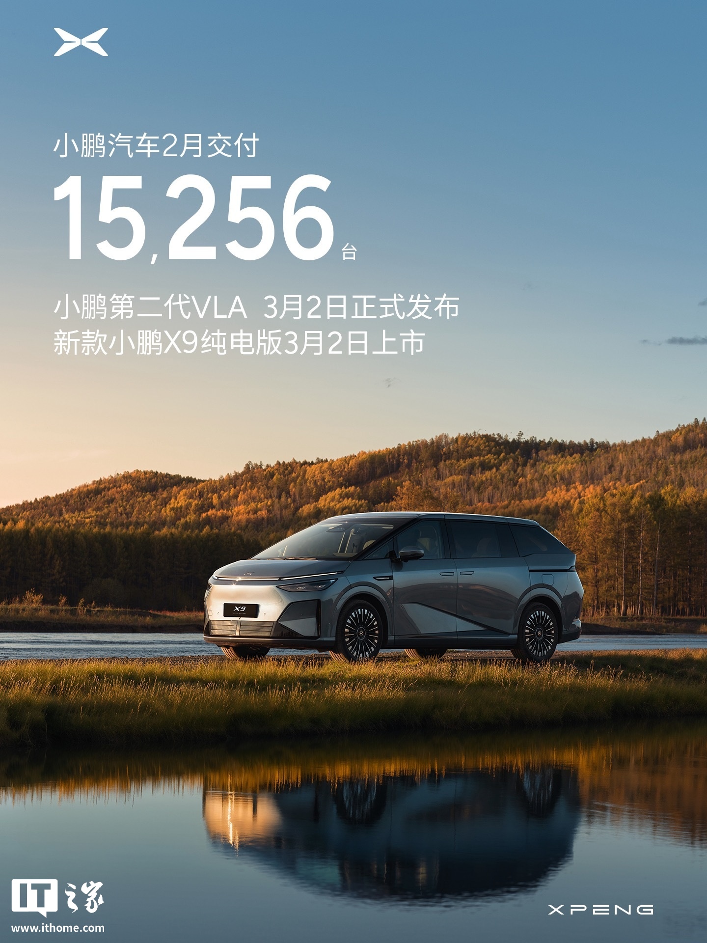 IT之家 3 月 1 日消息,小鹏汽车官方今日公布最新交付成绩:2026 年 2 月,共交付新车 15256 台。2026 年 1-2 月交付的车辆,相较于传统燃油车型,全生命周期预计可减少碳排放约 55 万吨,相当于 916 万棵中等树苗 10 年的固碳量。