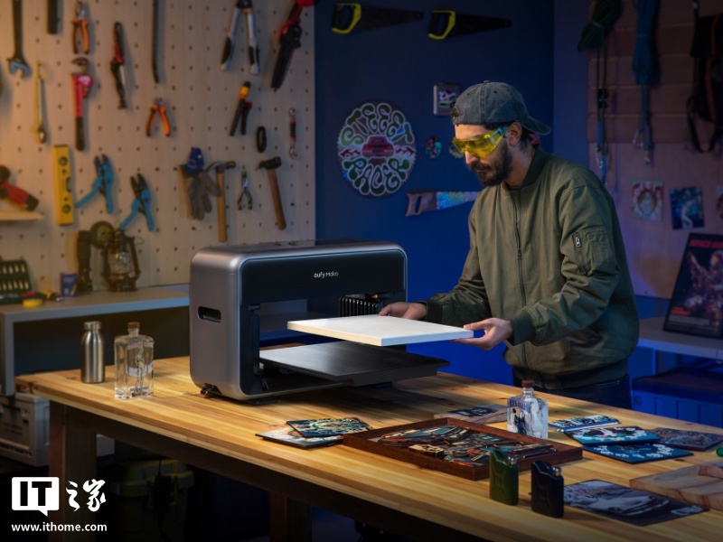 根据官方描述,该打印机可在金属、玻璃、亚克力、木质表面印刷,可模拟油画笔触、皮革压纹等质感,印刷高度可达 5mm;同时该打印机随附的应用程序中还带有 AI 创作功能,可供用户生成纹理、浮雕等效果。