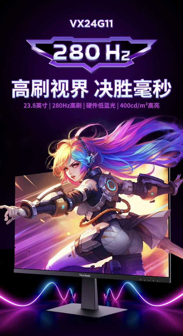 IT之家 3 月 2 日消息,优派现已推出一款型号为“VX24G11”的 23.8 英寸显示器,该机主打 1080P 280Hz,定价为 599 元。