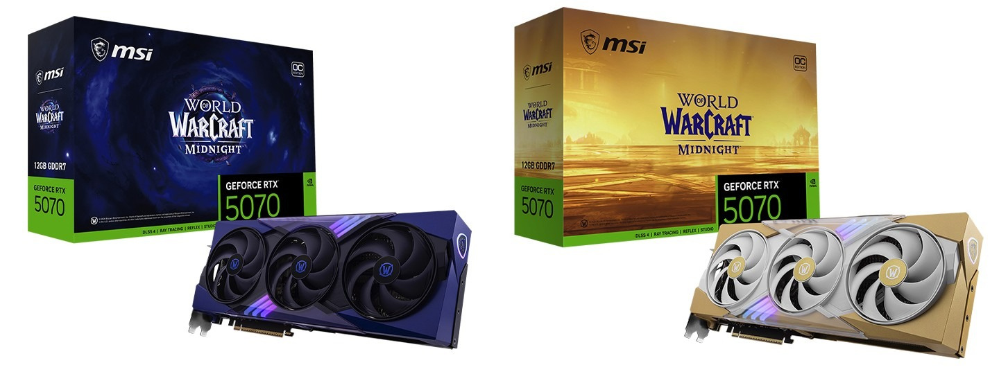 IT之家注意到,微星今日宣布延续与暴雪娱乐的合作,推出联名限量的 MSI × 《魔兽世界:至暗之夜》GeForce RTX 5070 显卡,提供圣光与虚空双版本选择,每款都拥有主题外包装。