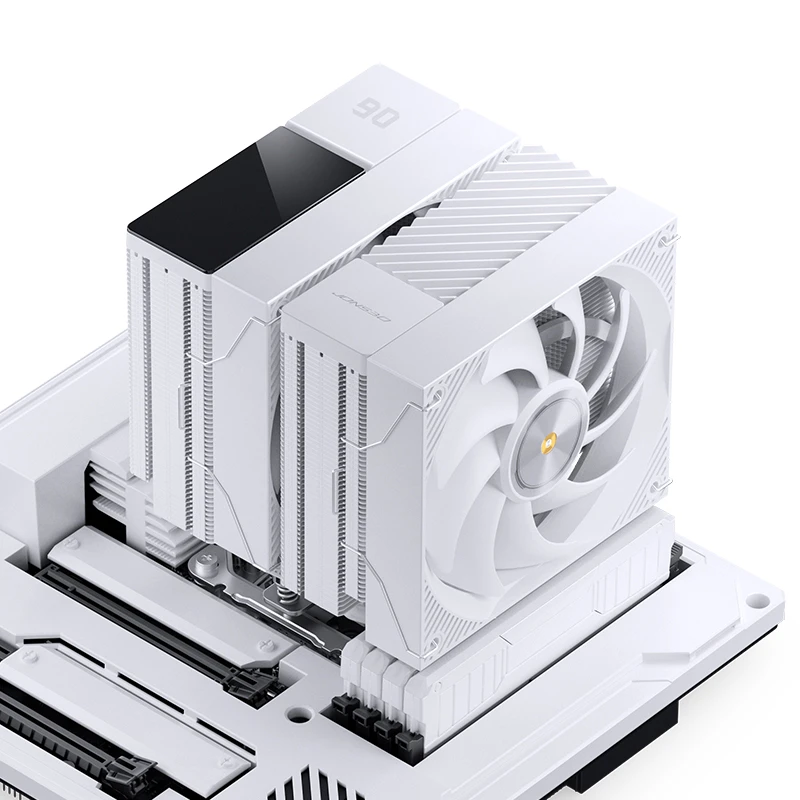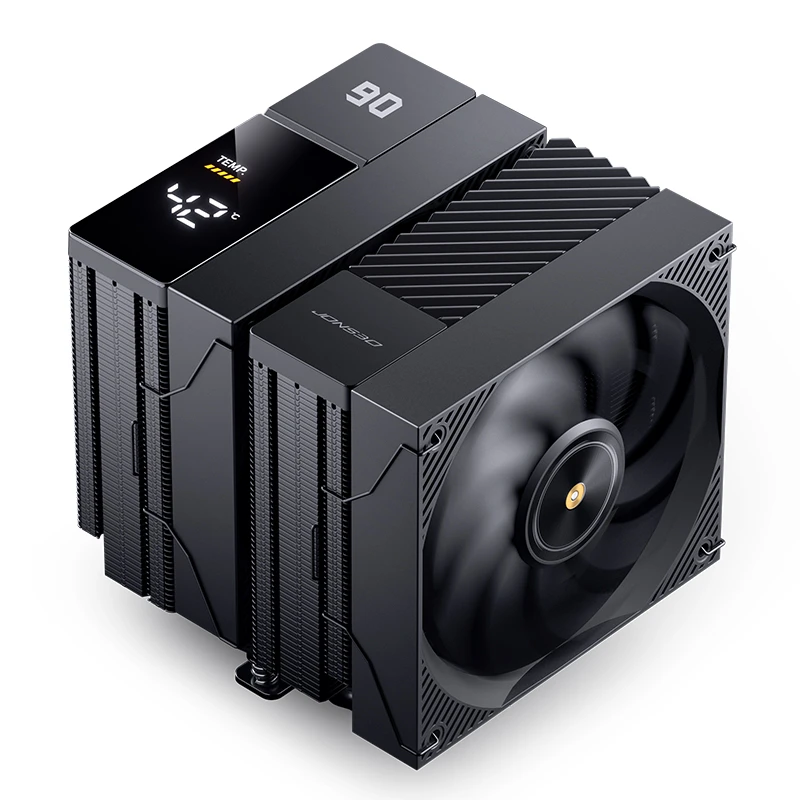 IT之家 3 月 3 日消息,乔思伯 JONSBO 昨日推出了新款风冷散热器 CC90。其采用双塔双风扇构型,搭载六根 6mm 直径“逆重力”镀镍热管、CNC 底座,D-TDP 参数达 285W,可通过数显模块实时监控处理器温度表现。