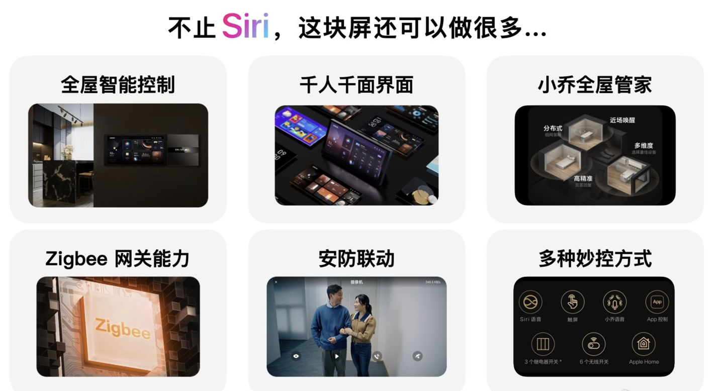 该产品搭载双扬声器四麦克风阵列,支持接入苹果家庭和 Aqara Home,可更原生态地无缝整合苹果智能家居产品,用户可进行隔空播放、灯控、温控等各种控制操作,亦可通过“嘿,Siri”语音指令直接控制全屋设备。