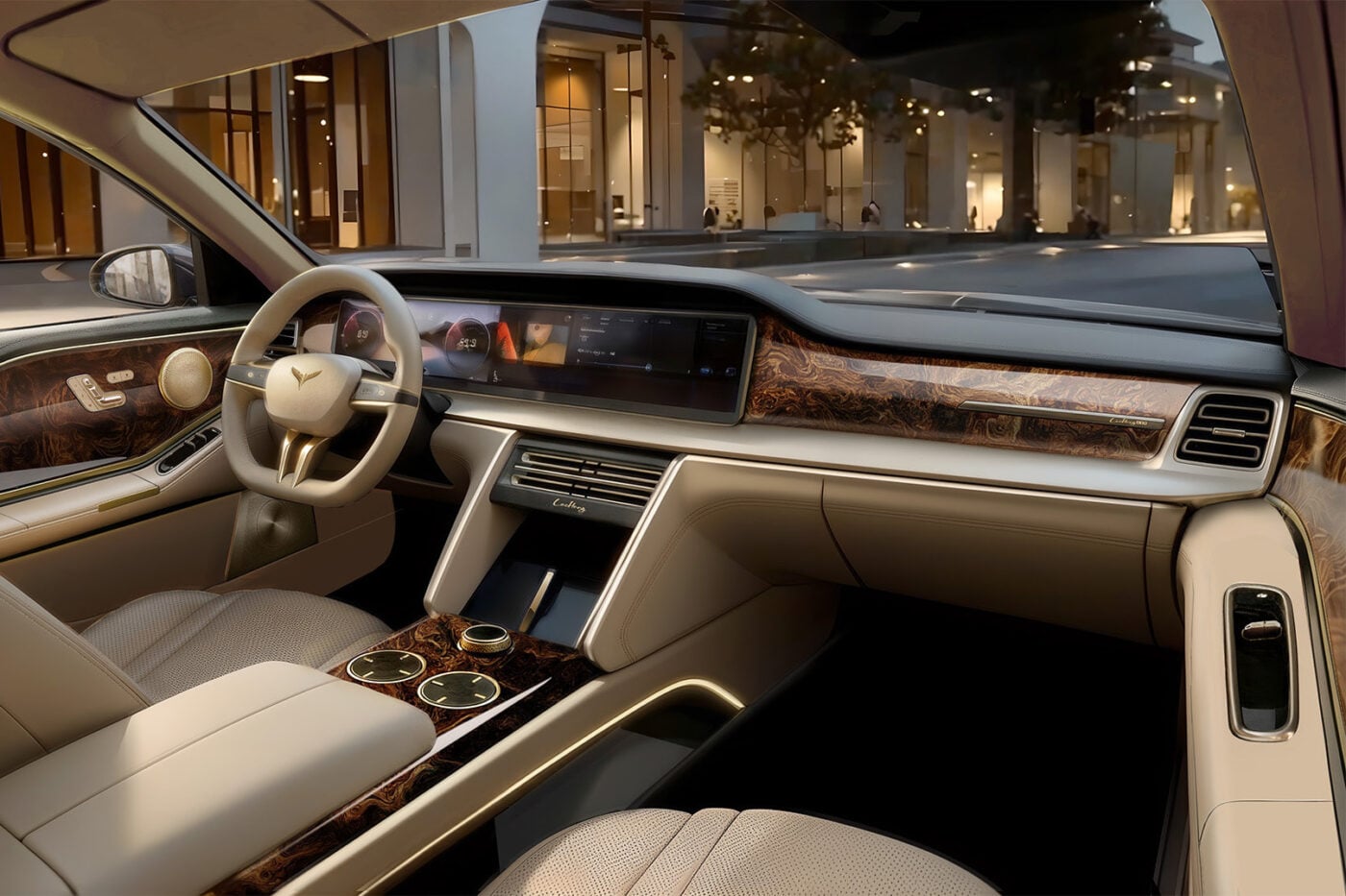 两款旗舰车型的座舱均采用简洁布局,并大量使用真木饰板和镀金装饰件等高端材料。设计上,新车并未采用双辐方向盘或副驾专属屏等“新势力”常见配置,而是回归更传统的豪华车设计。