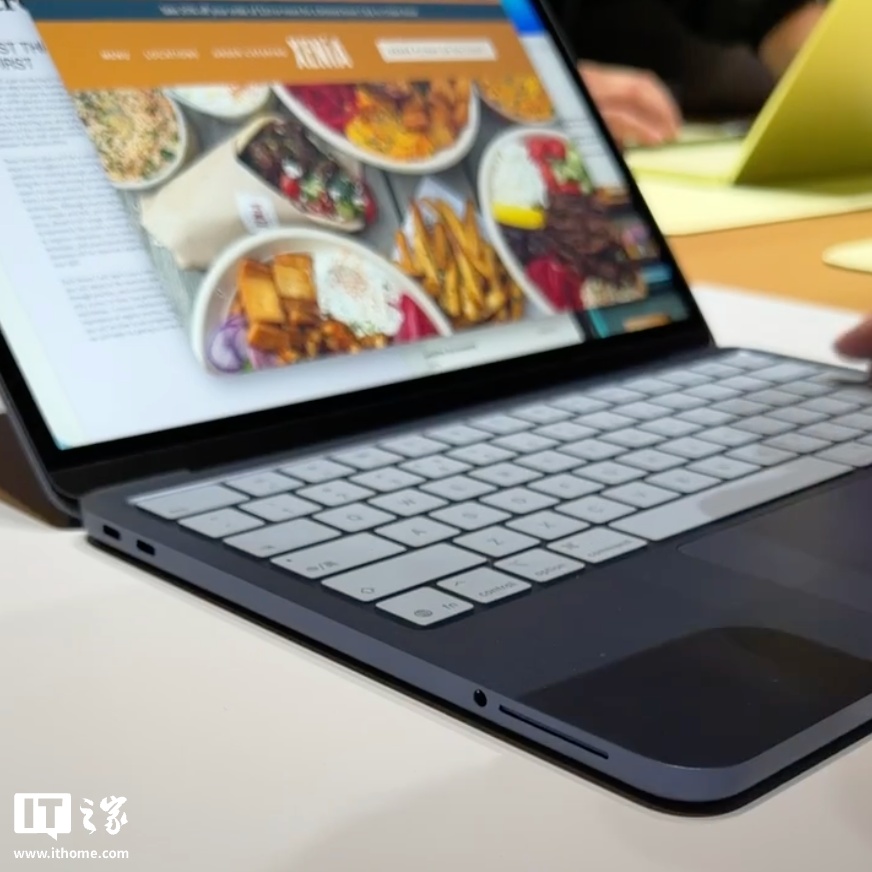 IT之家在现场对这款笔记本进行体验,该机并未配备 MacBook Pro / Air 同款 MagSafe 磁吸充电接口,仅在机身左侧提供了 2 个 USB-C 接口及 1 个 3.5mm 耳机孔(注:长条部分是扬声器开孔,不是 SD 卡槽)。