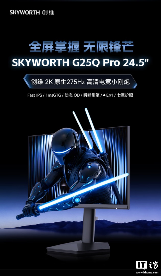 IT之家 3 月 5 日消息,创维现已在京东上架一款型号为“G25Q Pro”的 24.5 英寸显示器,该机主打 2K 275Hz,定价为 1299 元。