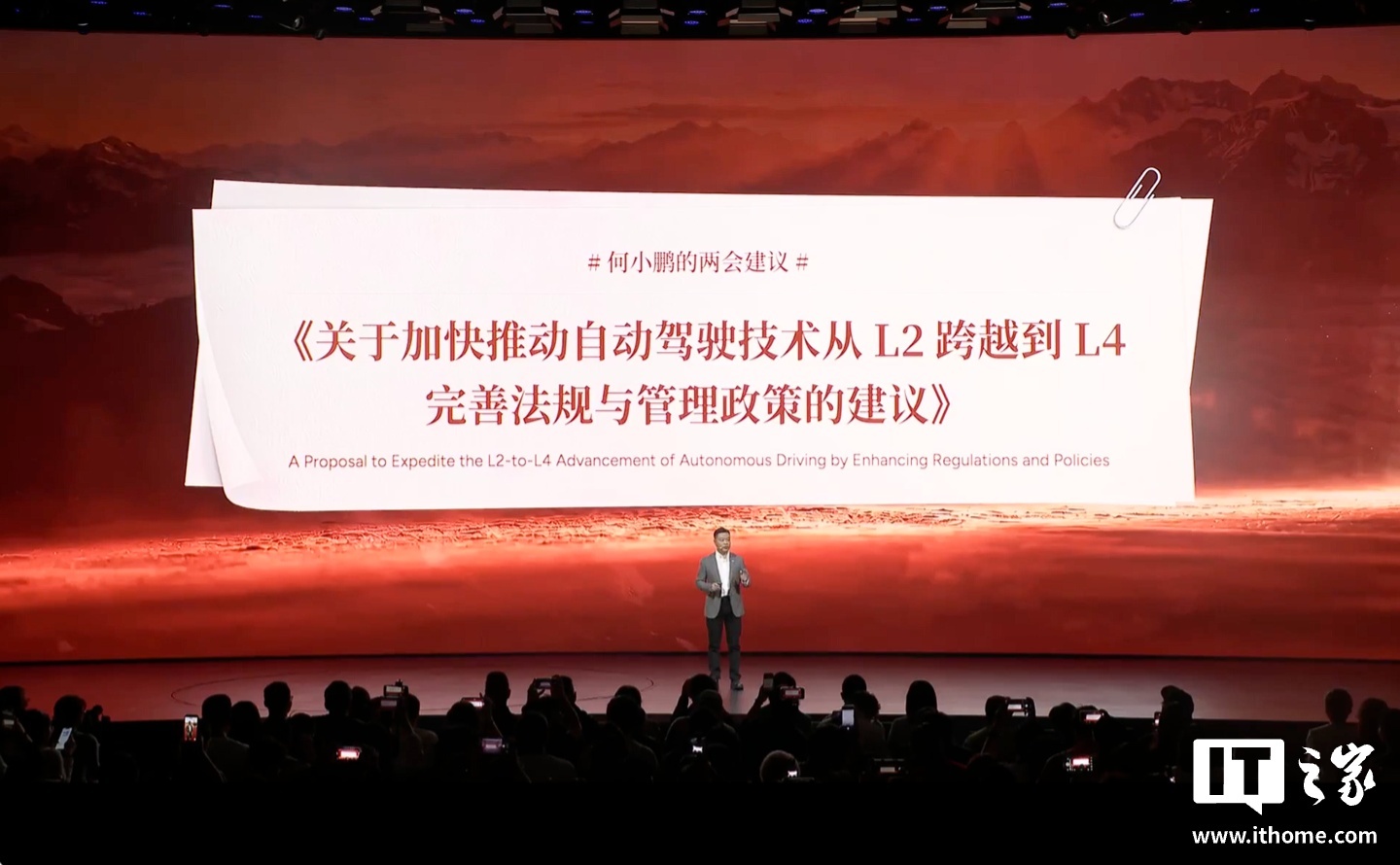据IT之家此前报道,在 3 月 2 日的小鹏第二代 VLA 媒体体验日活动中,何小鹏公布了自己的 2026 两会建议:加快推动自动驾驶技术从 L2 跨越到 L4 完善法规与管理政策。他认为,L3 始终是“中间态”。