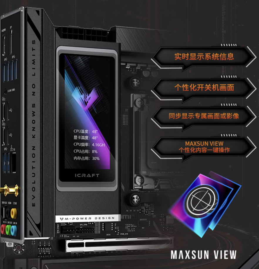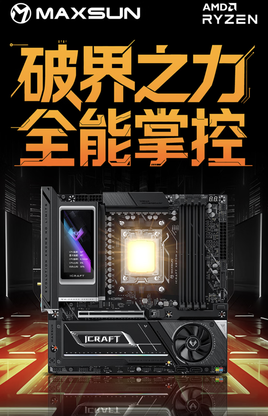 IT之家 3 月 5 日消息,铭瑄现已在京东上架一款 MS-iCraft X870M WiFi 电竞之心游戏主板,该产品最大的特色是其内置一块彩屏,定价为 1999 元。