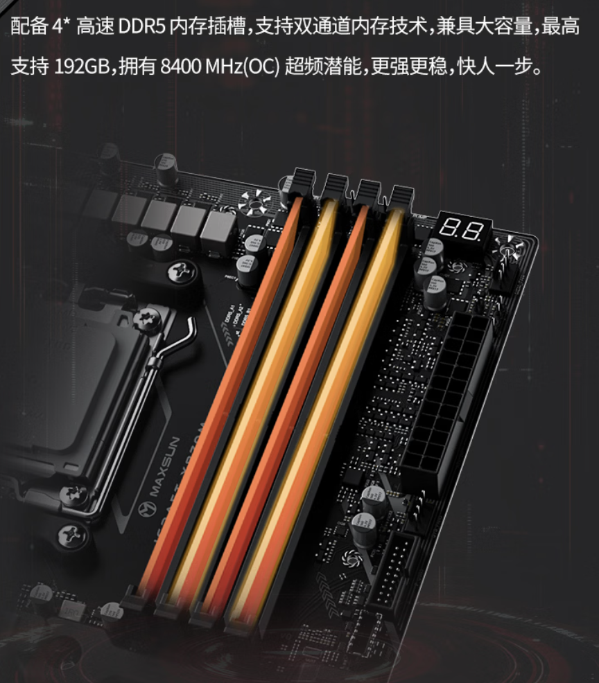 该主板采用 M-ATX 版型,配备一块彩色“锐影屏”,支持实时显示系统信息、个性化图片等内容。主板本身采用 16+2+1 相供电设计,TDP 支持 300W(可解锁至 400W)。