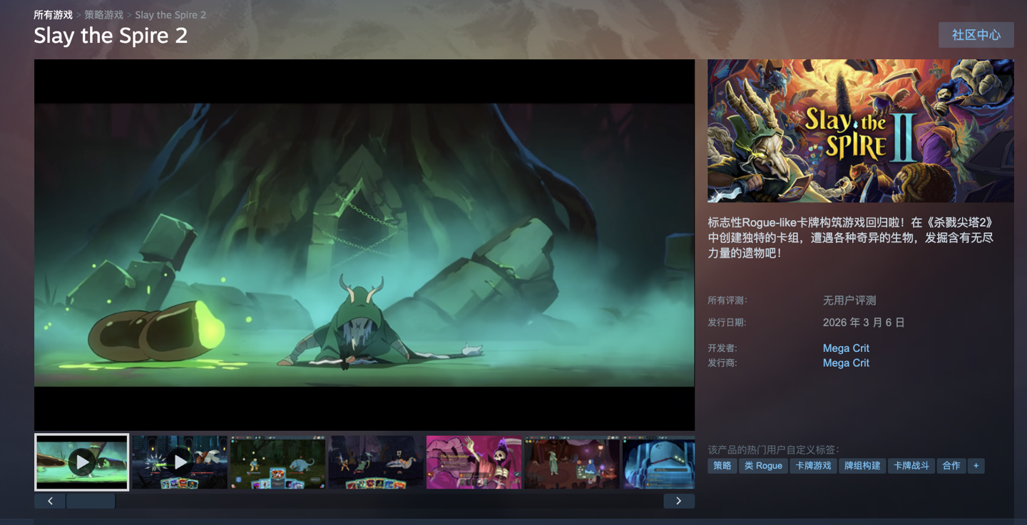 IT之家 3 月 5 日消息,开发商 Mega Crit 旗下现代牌组构建式肉鸽游戏《杀戮尖塔 2(Slay the Spire 2 )》将于北京时间明天凌晨 2 点开启抢先体验,IT之家附商品页链接。