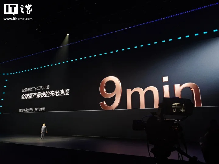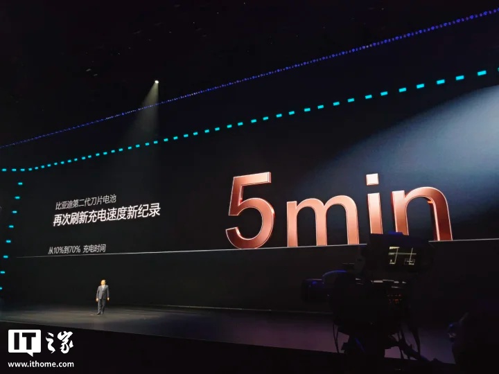 IT之家 3 月 5 日消息,在今晚的比亚迪二代刀片暨闪充技术发布会上,比亚迪正式发布了第二代刀片电池发布,从 10% 充到 70% 只需五分钟,从 10% 充到 97% 只需 9 分钟。