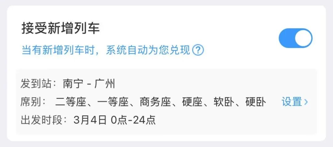 善用候补“捡漏”:候补是最优策略,同时也可在发车前几天关注是否有退票释放。