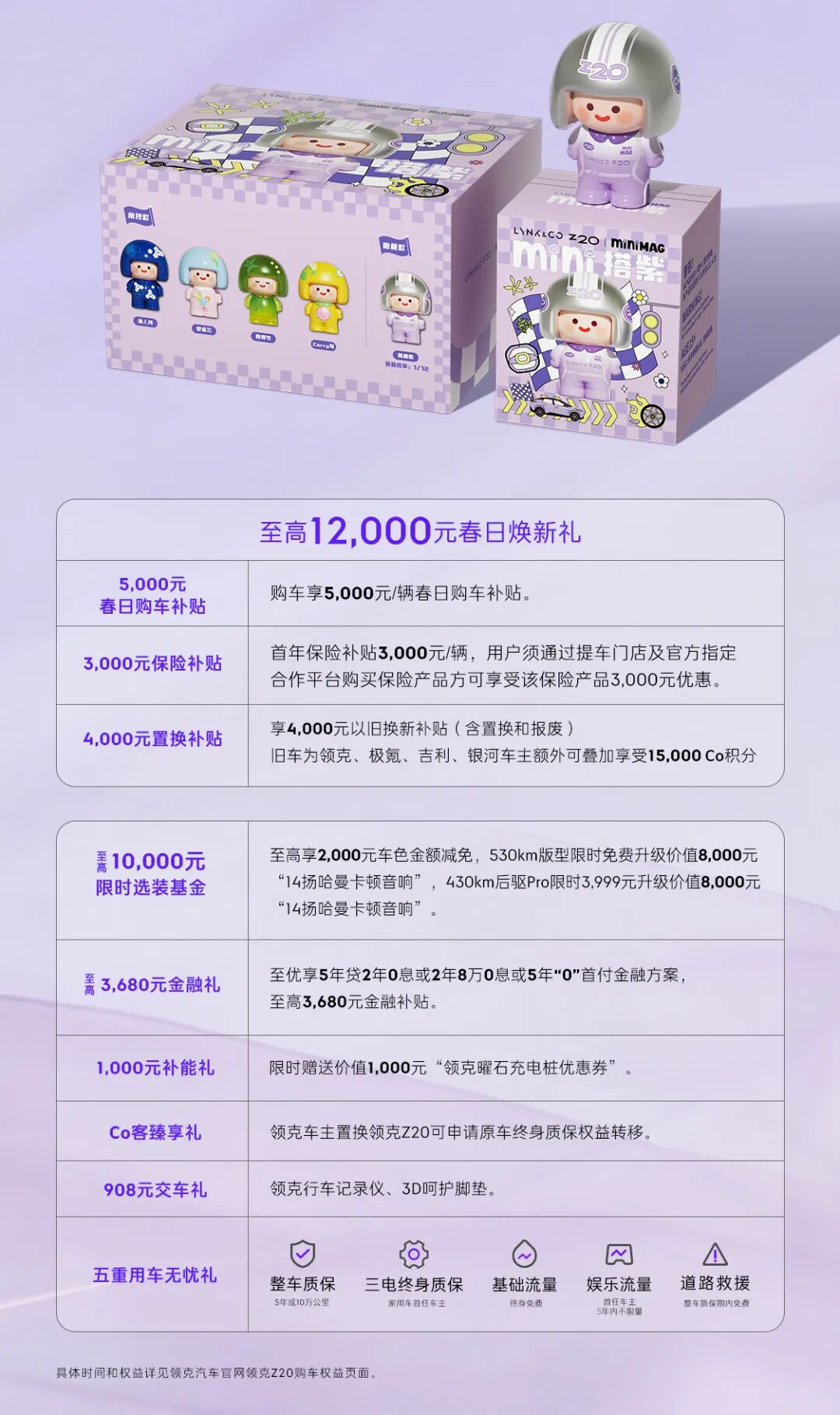 该车限时下订送联名手办盲盒,还有 5000 元购车补贴、3000 元保险补贴、至高 1 万元限时选装基金等。