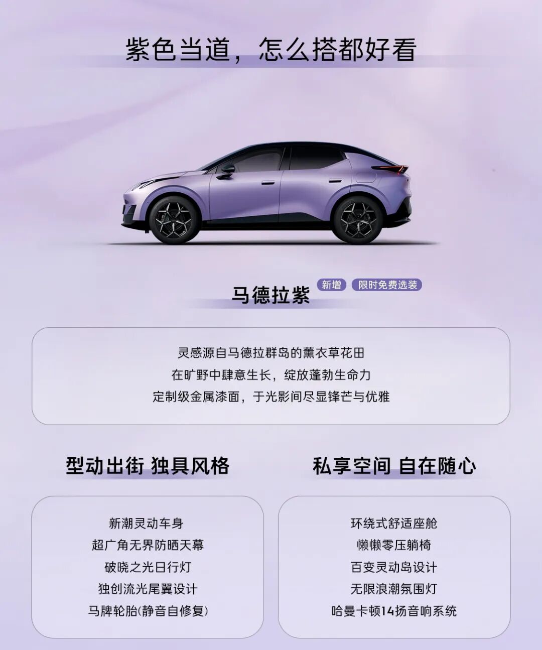 IT之家 3 月 6 日消息,领克 Z20 汽车今日上新了“马德拉紫”外观版本,灵感源自大西洋马德拉岛的薰衣草,限时价 10.99 万元起。
