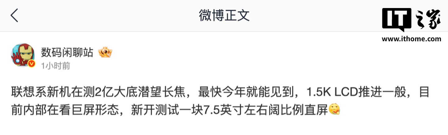 IT之家 3 月 6 日消息,博主 @数码闲聊站 今天在微博表示,联想系新机正在测试 2 亿像素大底潜望长焦,最快今年就能见到。