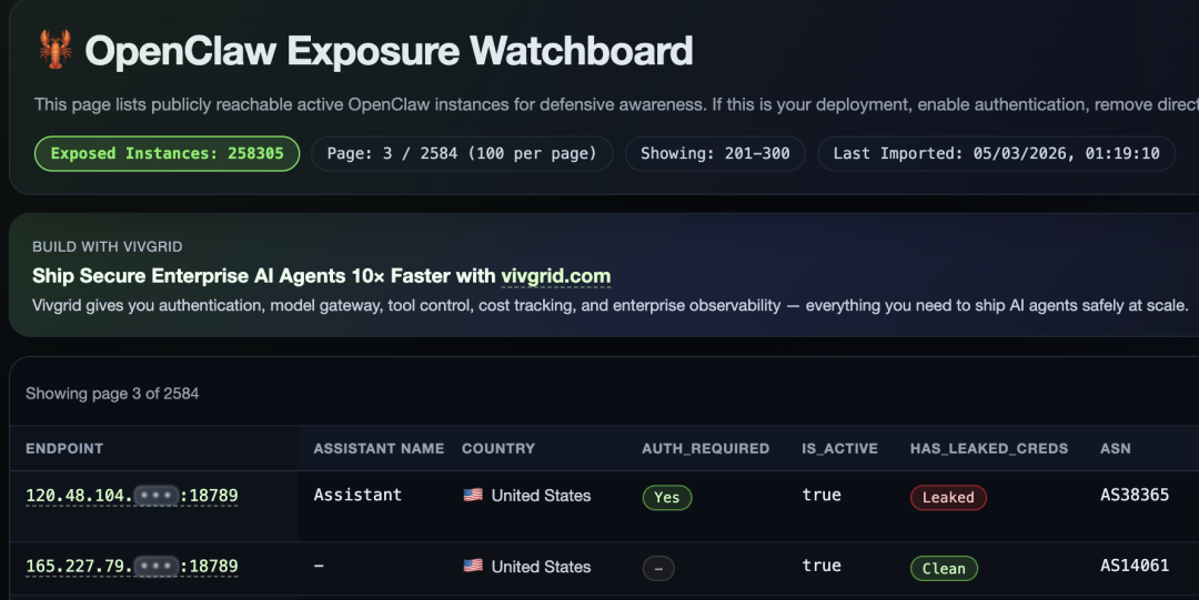 有多少龙虾在互联网上裸奔?AI 智能体带着你的密码和 API 密钥暴露给全网。