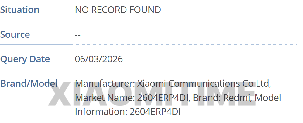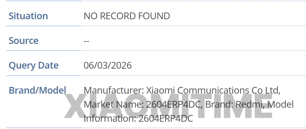 型号方面,GSMA IMEI 数据库中发现了 2604ERP4DG、2604ERP4DC 和 2604ERP4DI,基于后缀含义,分别对应国际版、中国版以及印度版。IT之家附上相关截图如下: