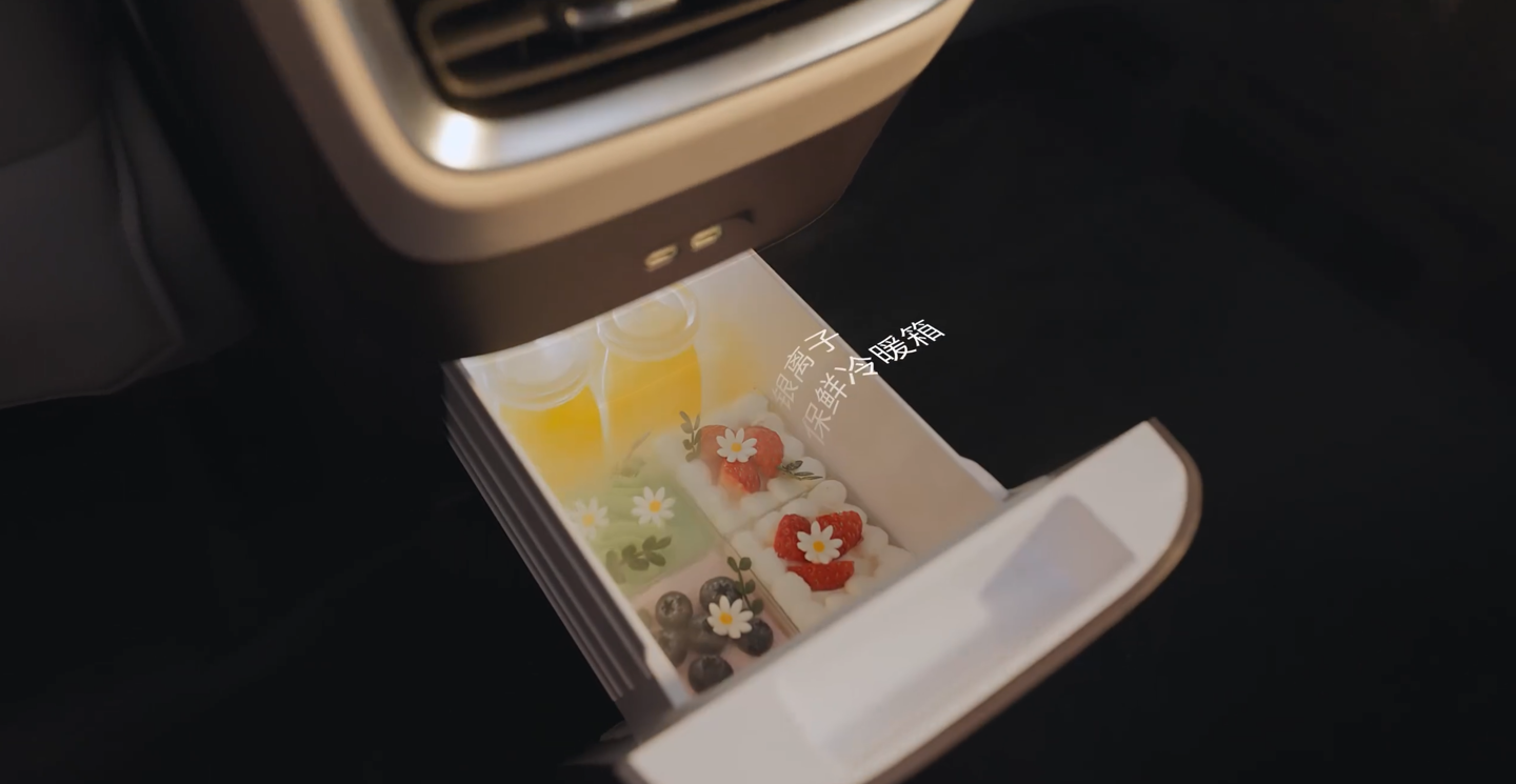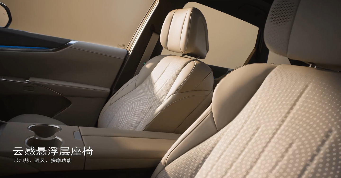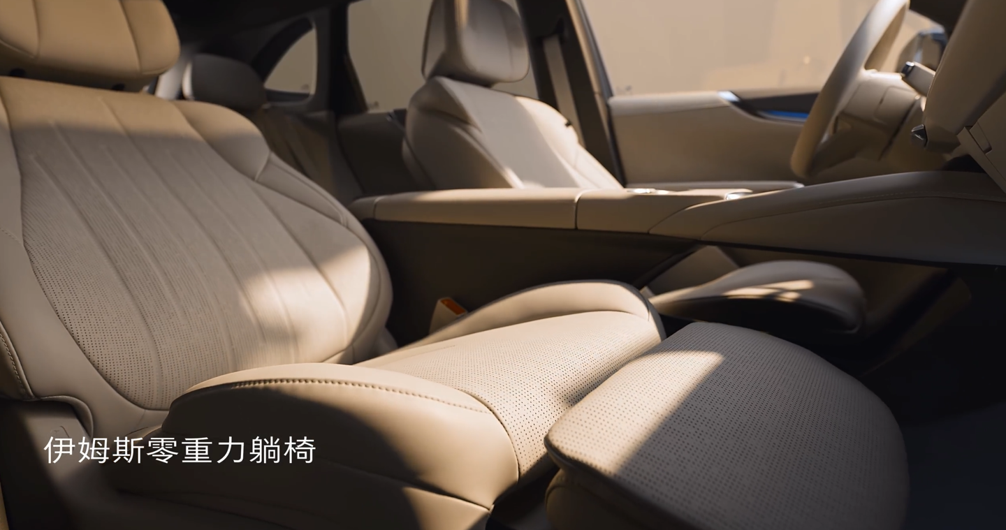 从官方视频来看,这款新车配备了 7.1.4 杜比全景声、15.6 英寸莱茵认证智慧中控屏、256 色智能交互氛围灯、20 扬声器环绕音响、云感悬浮层座椅(带加热、通风、按摩功能)、伊姆斯零重力躺椅、二排椅背电动调节、护眼智慧顶灯(三档色温可调)、二排多功能桌板、银离子保鲜冷暖箱、15.6 英寸莱茵认证二排影院屏等配置。
