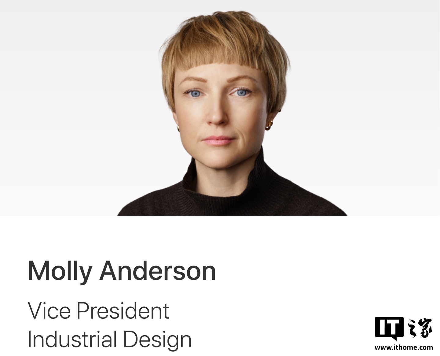 此外,Molly Anderson 也作为工业设计副总裁被列入该名单,她自 2024 年起便一直领导着苹果的工业设计团队,此次上榜标志着官方对其领导地位的彻底确认。