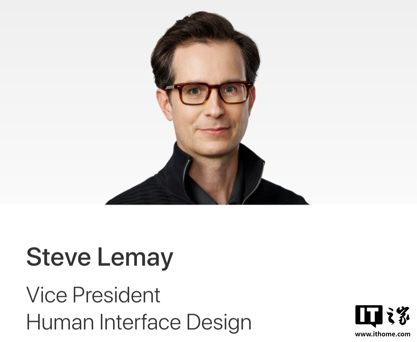 设计团队方面,两位新晋副总裁首次登上苹果的核心管理层页面。Steve Lemay 正式以人机交互设计副总裁的身份亮相,他在去年底接替了离职加盟 Meta 的前任副总裁 Alan Dye。